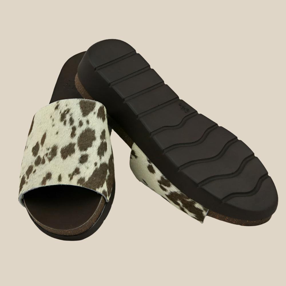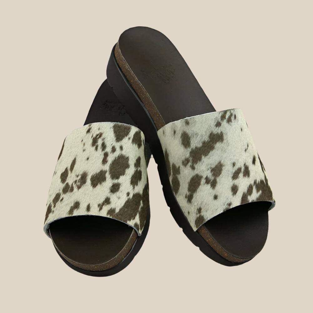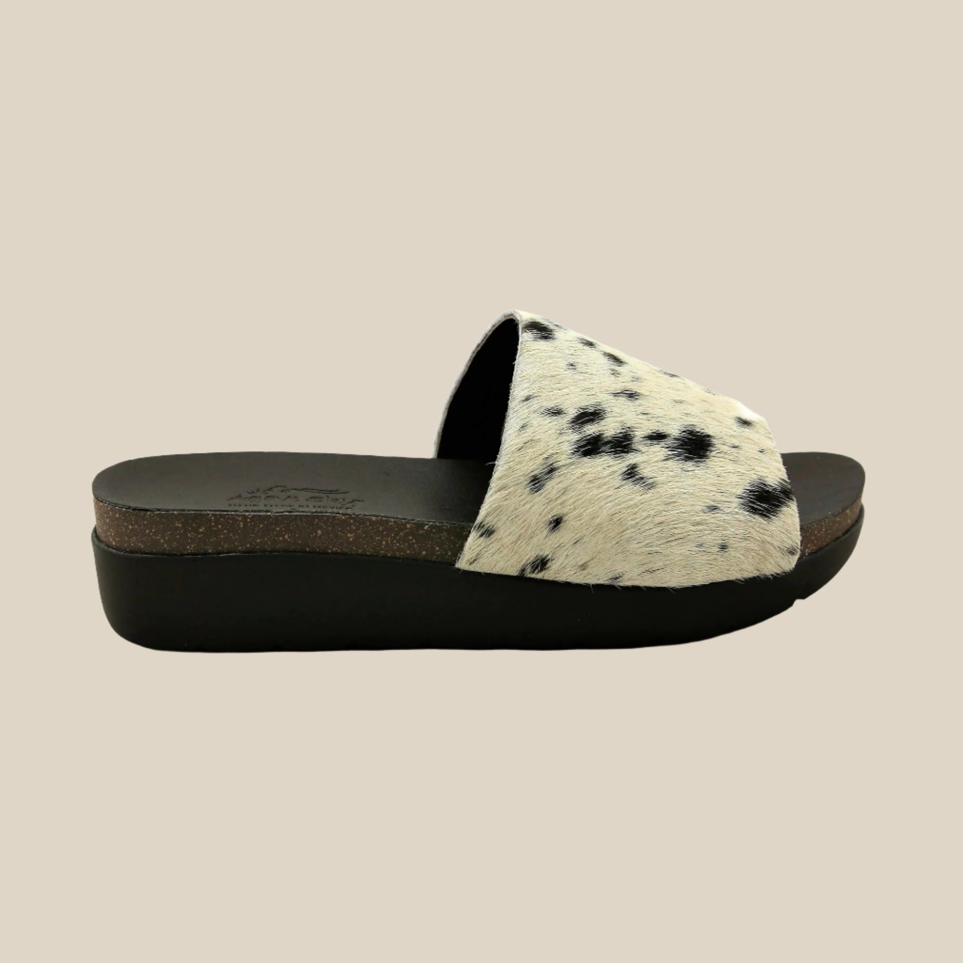 Custom, hand made wedges from start to finish. These hair on hide slides are sure to elevate any outfit. Our wedges are hand cut from 100% natural cowhide. Each pair is truly "one of a kind." Some will have more spots than others.