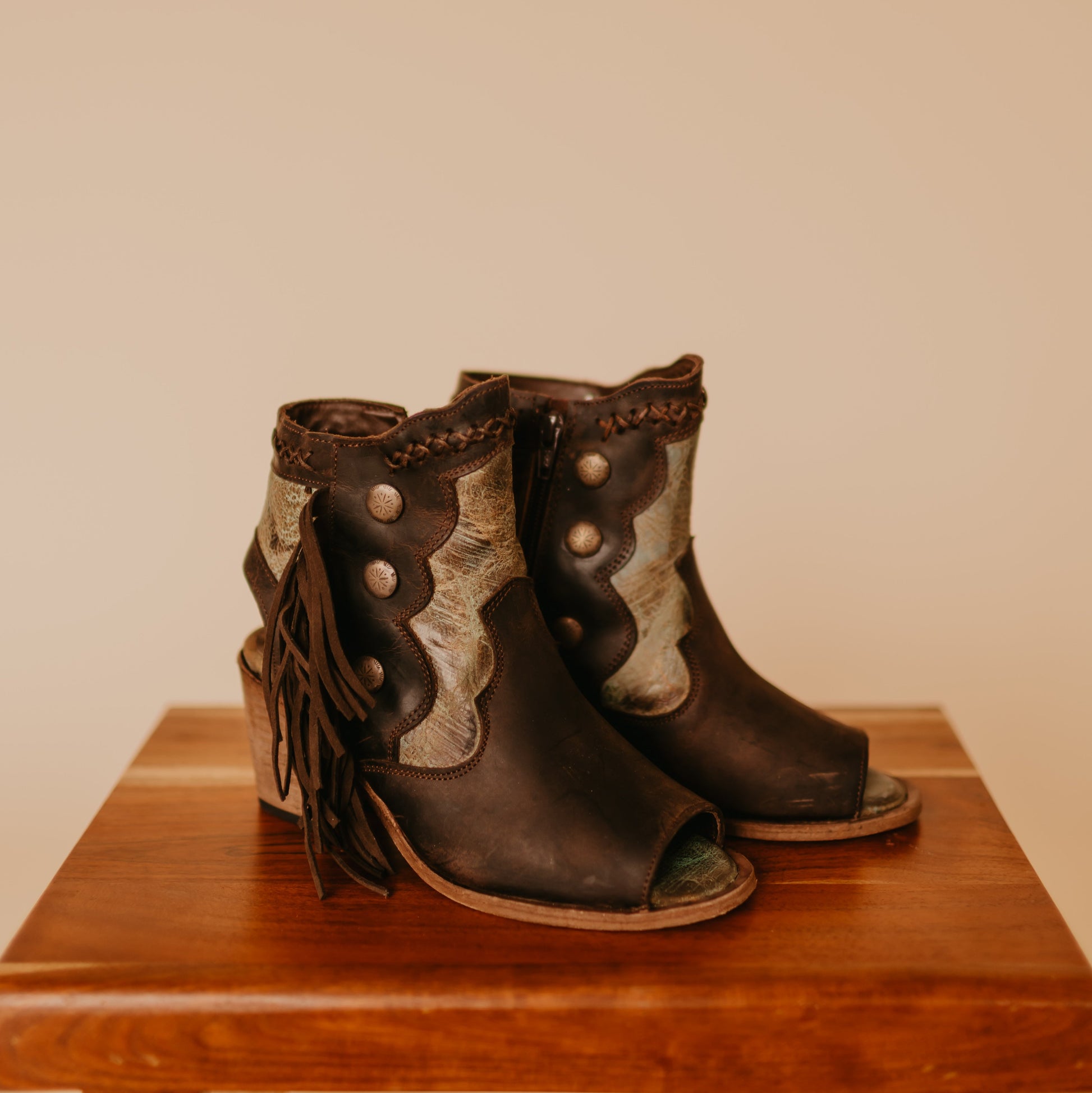 Own the streets with style in our Josie sandal. Featuring hints of our turquoise distressed leather, a sweet little peep toe, our comfort insole and topped off with a little fringe and you will be the epitome of chic.